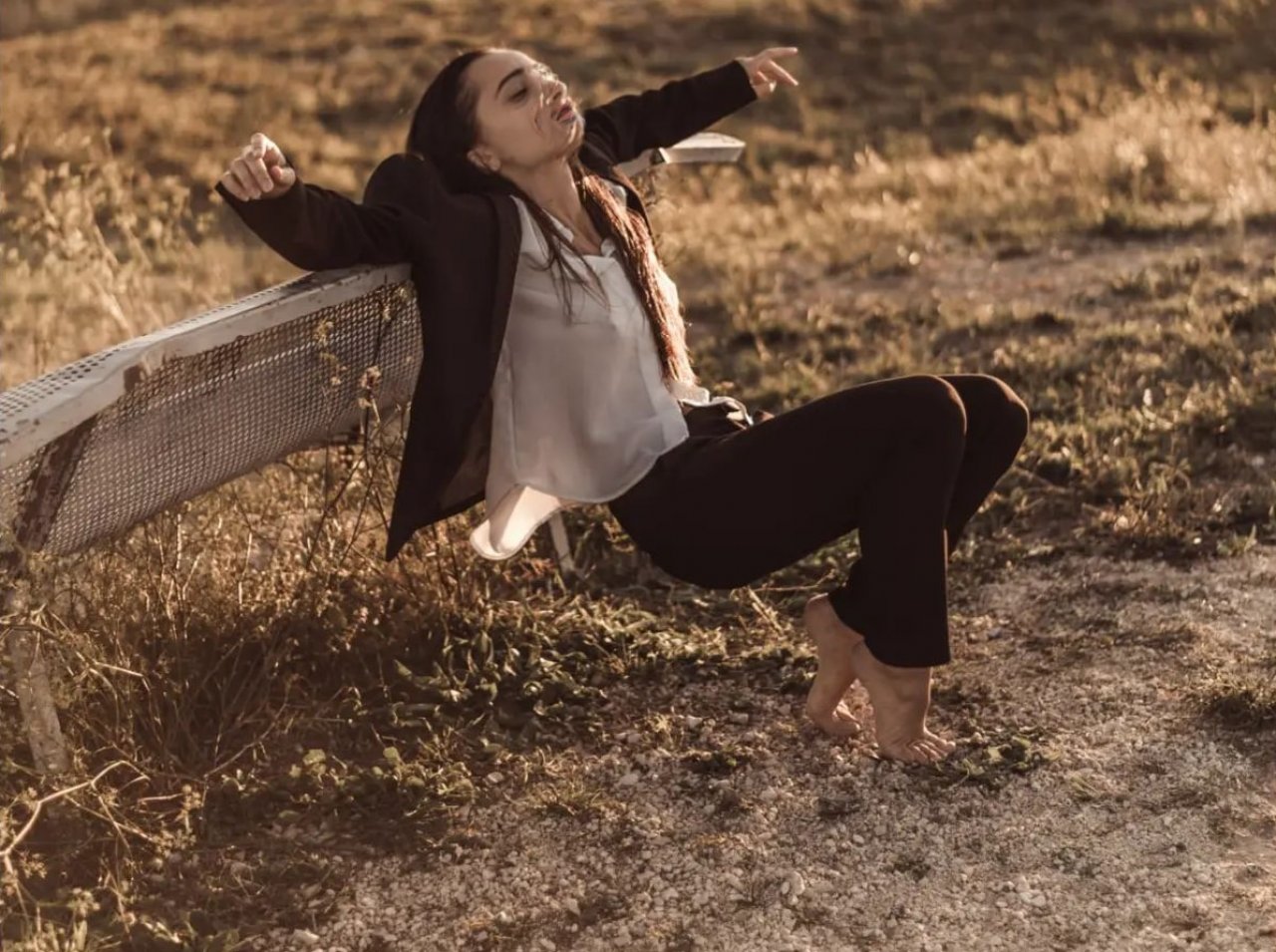 in der abendsonne auf der heide – ja und völlig durch, verschwitzt und müde, also ein typisches portrait immer noch in den arbeitsklamotten aber schon barfuss !
